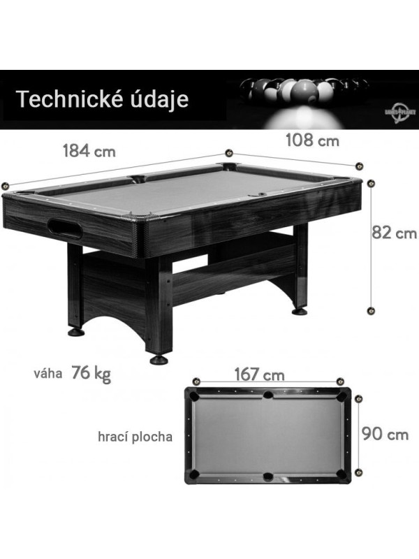 GamesPlanet biliardový stôl 6 ft, s vybavením