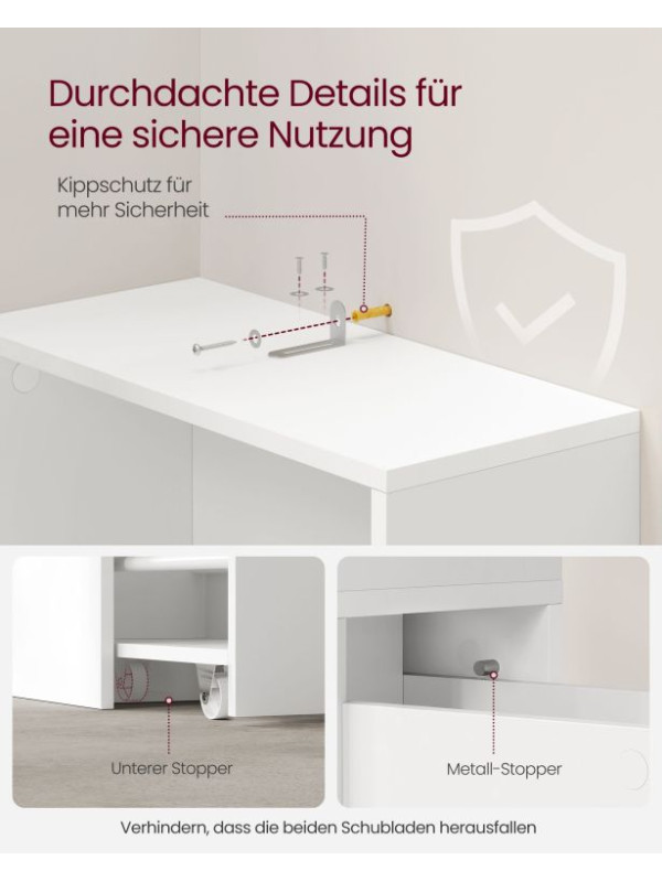 - Stabilná konštrukcia – vysokokvalitná drevotriesková doska a sada proti prevráteniu pre maximálnu bezpečnosť.