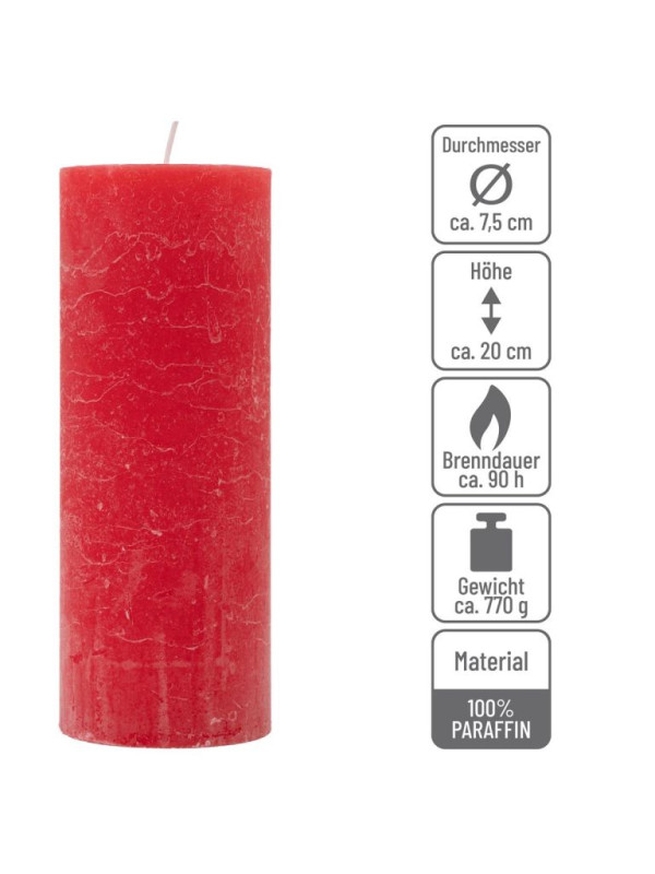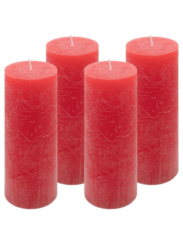 Červená parafínová sviečka rustikálna 20 cm, 90 h, sada 4 ks