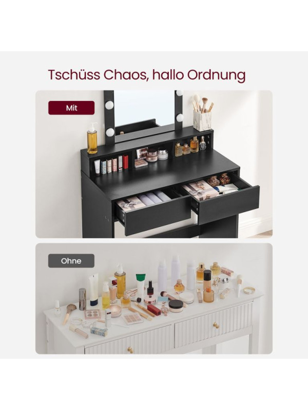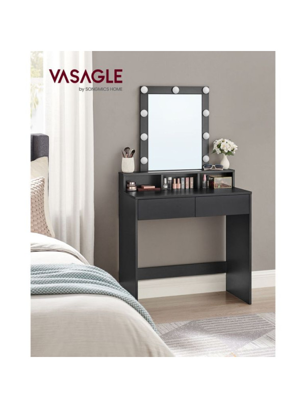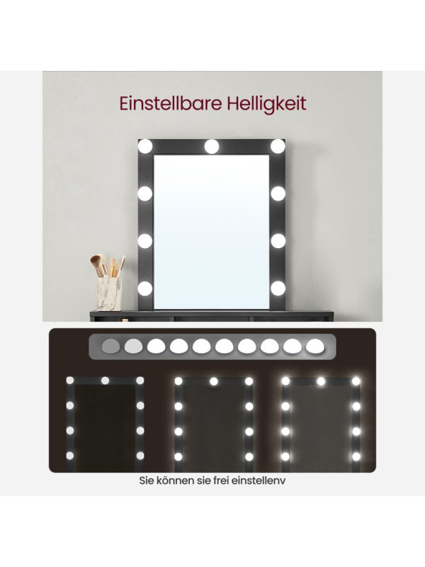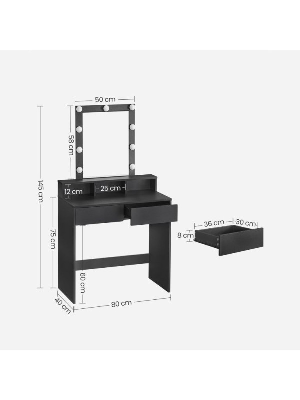 Toaletný stolík s LED osvetlením, čierny, 80x40x145 cm