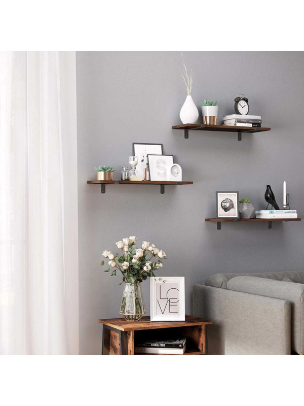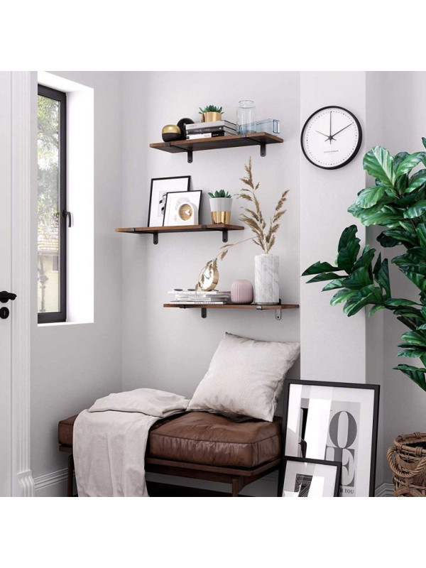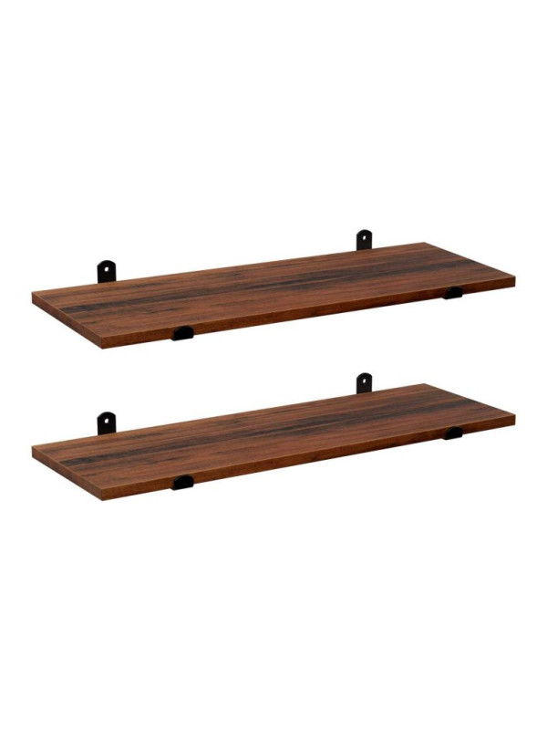 Táto sada dvoch nástenných políc v retro dizajne okamžite oživí každý interiér. Tmavé drevo v kombinácii s čiernymi kovovými konzolami vyzerá elegantne a moderne, vďaka čomu sa skvele hodí do spální, obývacích izieb a predsiení. Vytvára priestor pre dekorácie, knihy alebo drobnosti, ktoré chcete mať na očiach.