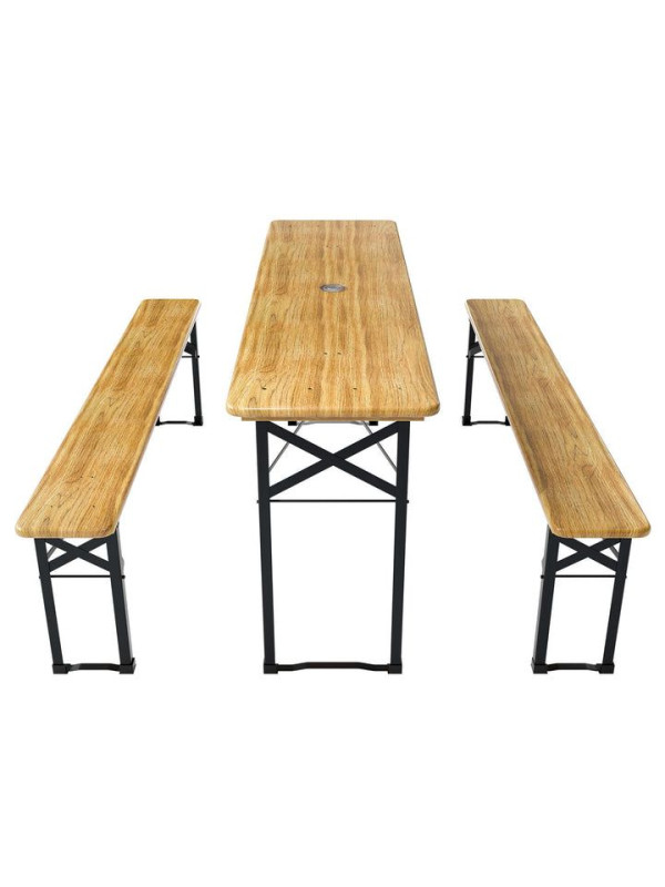 Pivný set je ideálnou voľbou pre každú záhradnú oslavu, grilovanie alebo posedenie s priateľmi. Prírodné čerešňové drevo a pevná kovová konštrukcia vytvára príjemnú atmosféru a ponúka dostatok priestoru pre všetkých hostí. Vďaka jednoduchému skladaciemu mechanizmu ho ľahko uložíte, keď ho práve nepotrebujete.