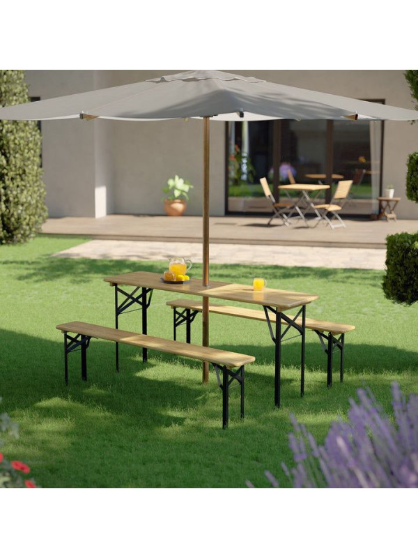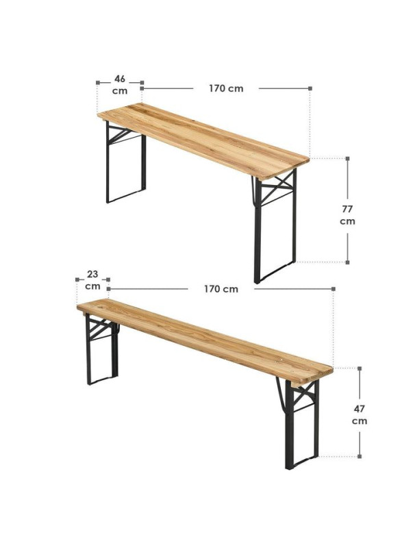 Záhradný pivný set, skladací, drevo/kov, 170 cm