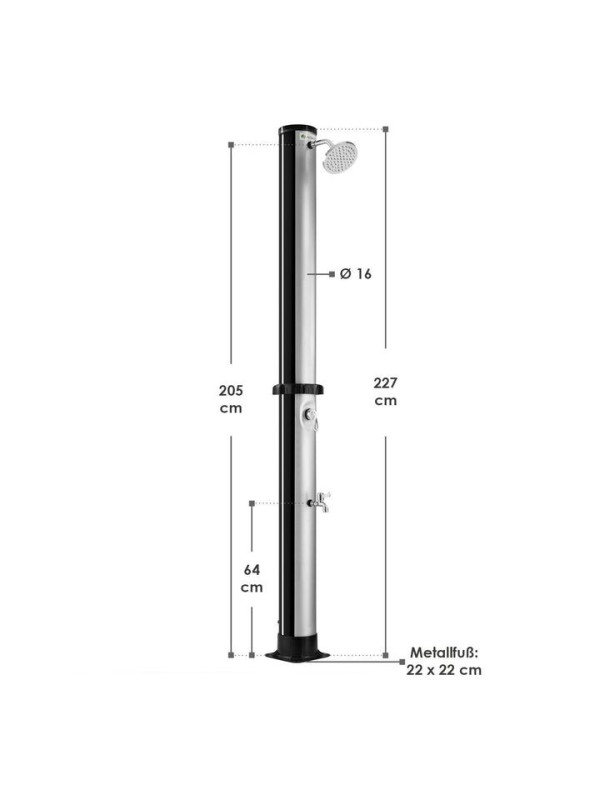 Zažite pocit luxusu na vlastnej záhrade s vonkajšou solárnou sprchou. Veľká dažďová hlavica a plynulá regulácia teploty vám umožnia nastaviť si sprchu presne podľa svojich predstáv. Oceníte aj praktickú nožnú sprchu na rýchle opláchnutie.