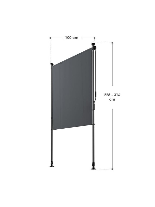 Vytvorte si súkromný a príjemný kútik na balkóne alebo terase vďaka vertikálnej markíze. Elegantný sivý dizajn sa hodí do každého exteriéru a poskytne vám príjemný tieň aj ochranu pred zvedavými pohľadmi. Užite si pokojné chvíle vonku bez obáv o počasie.