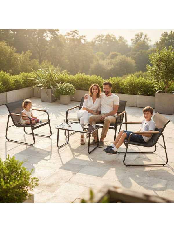 Vychutnajte si chvíle pohody pod holým nebom s moderným záhradným setom. Elegantná kombinácia kovu a textilu prináša nielen štýl, ale aj maximálny komfort pre vaše letné posedenie. Ideálne pre rodinné oslavy, odpočinok aj posedenie s priateľmi.