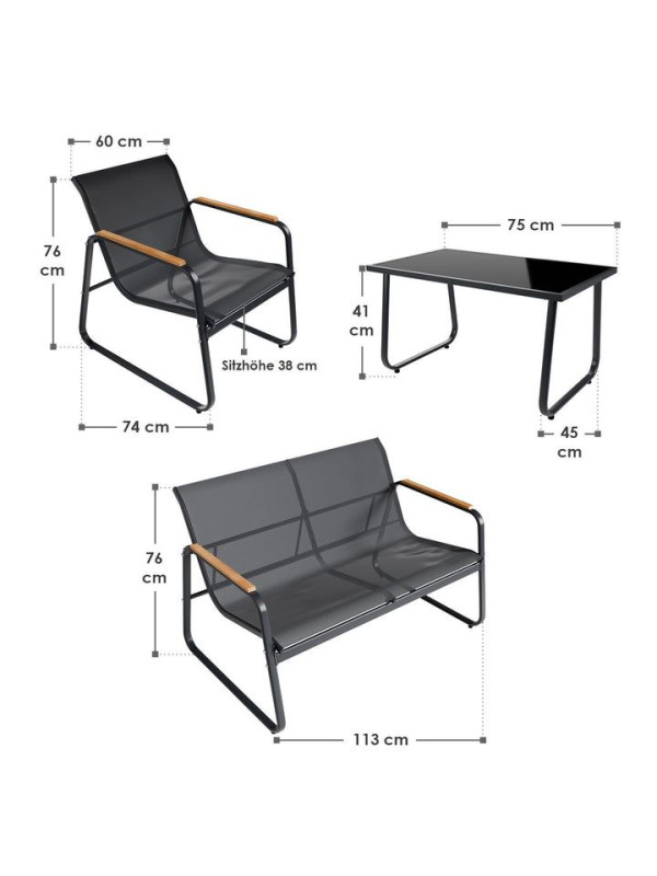 Moderný záhradný set, 2 kreslá, lavice a stôl, antracit