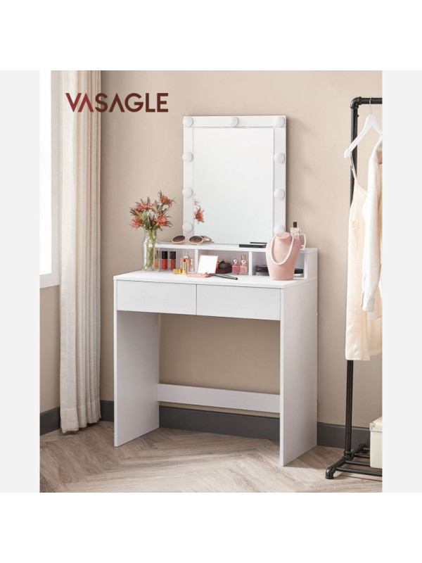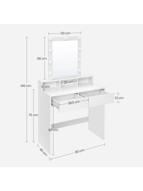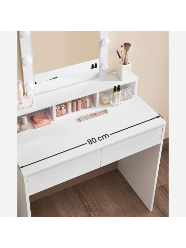 Toaletný stolík s LED osvetlením a úložným priestorom, biely