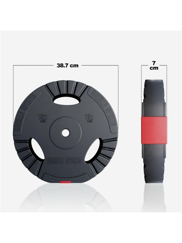 Činková sada Gorilla Sports 100 kg s plastovým povrchom