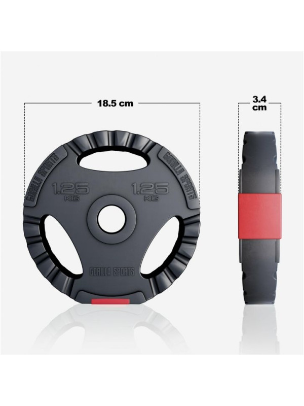 - 4x 1,25 kg: priemer: 18,5 cm, hrúbka: 3,4 cm