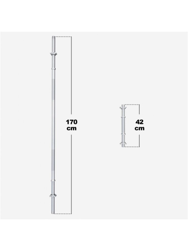 - Posilňovacia tyč: dĺžka: 170 cm, hmotnosť: 10 kg, priemer kotúčov: 30/31 mm, nástrčná plocha: 31,1 cm