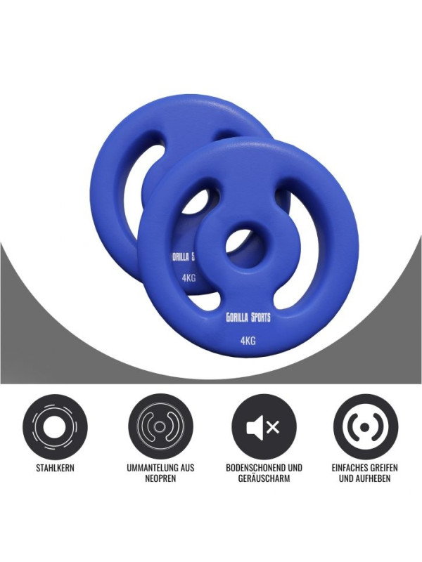 Gorilla Sports Súprava záťažových kotúčov 2 x 4 kg, tm. modrá