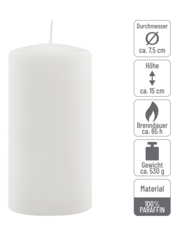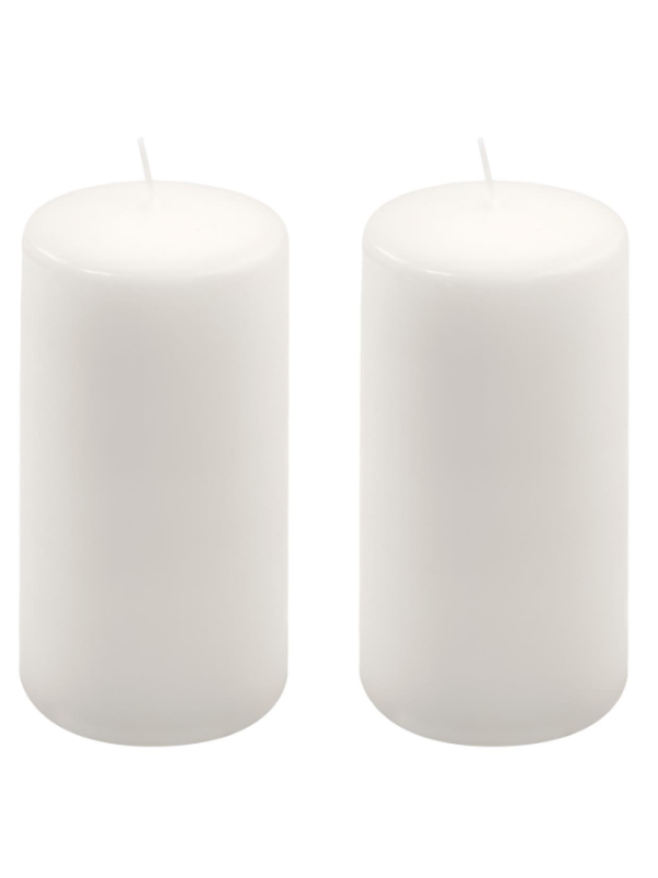 - sviečky: 2× biele stĺpové sviečky 15 cm × 7,5 cm