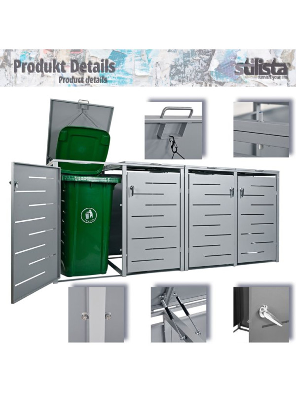 STILISTA skriňa na 4 popolnice 260 x 80 x 116 cm, antracit