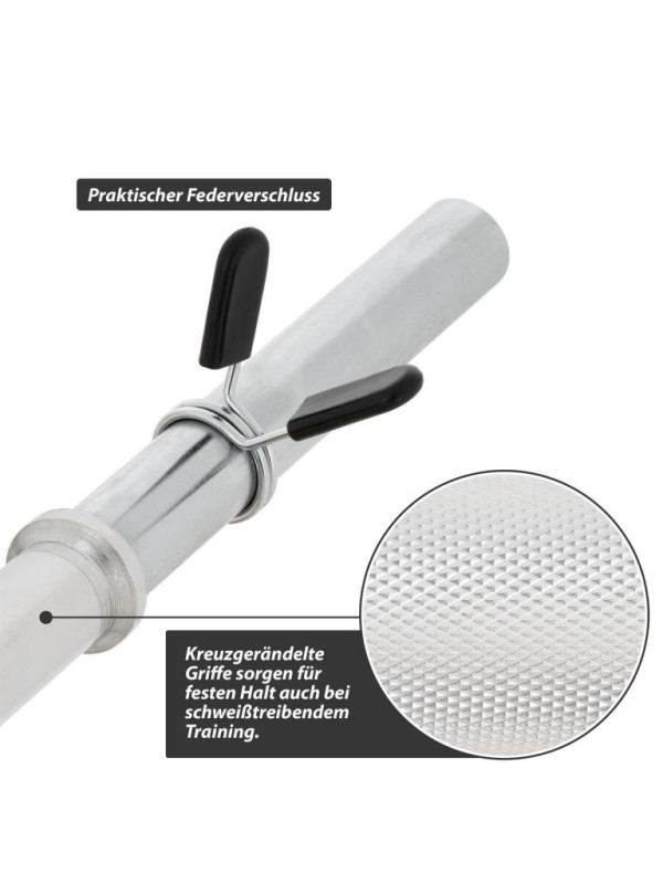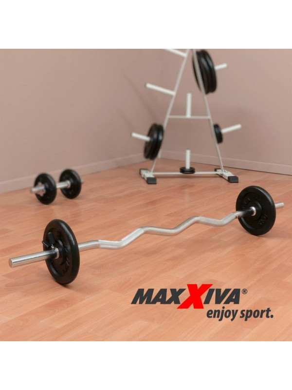 MAXXIVA Zakrivená obojručná EZ tyč 130 cm, strieborná