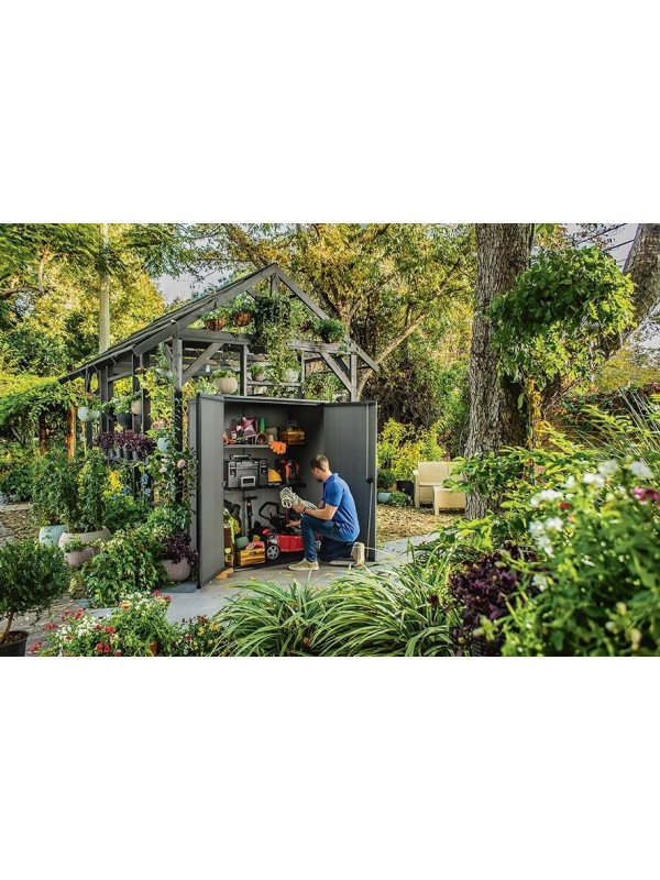 Vytvorte si poriadok a štýlový priestor na záhrade s touto skrinkou.