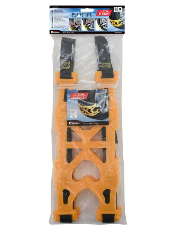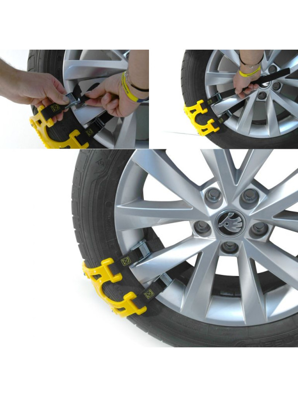 Univerzálne vyslobodzovacie pásy na núdzové vyslobodenie zo snehu i poľadovice. Pásy sú vhodné pre všetky bežné rozmery pneu (ALU aj oceľové disky). Dokonalé upevnenie, s rýchlou a zároveň jednoduchou montážou je zaistená sťahovacími pásmi s prackami.