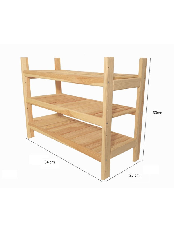 Drevený regál s 3 policami, 60 × 54 × 25 cm, česká výroba