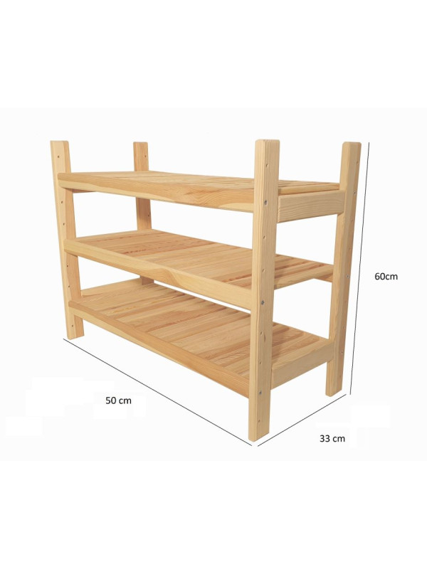 Drevený regál s 3 policami, rozmery 60 × 50 × 33 cm, česká