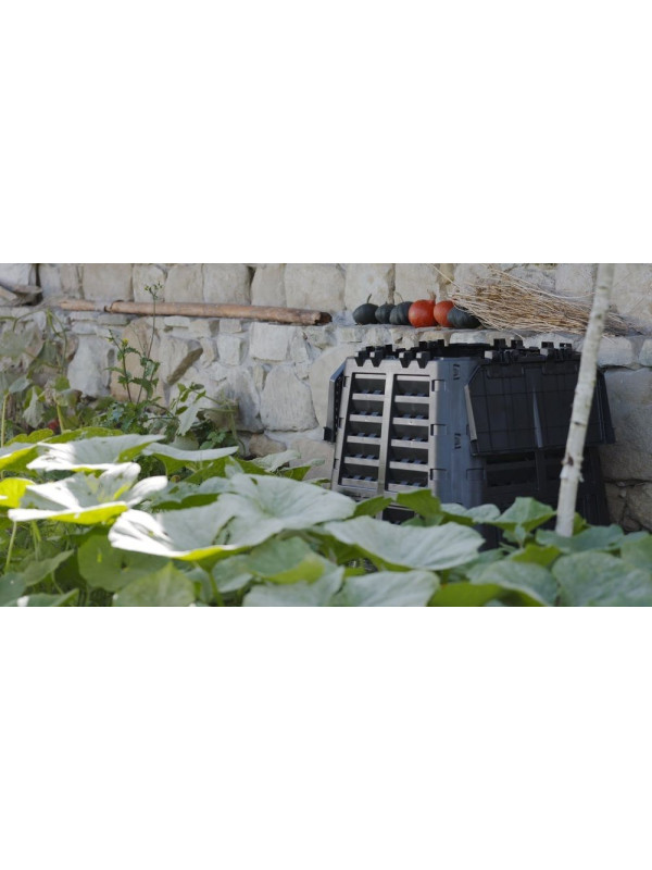 Vytvorte si vlastný kompost jednoducho a rýchlo vďaka veľkému kompostéru s objemom 740 l. Špeciálny systém závlahy a odvetrávania urýchli rozklad a zabezpečí kvalitný výsledok. Vďaka pohodlným držadlám a veľkým dvierkam bude manipulácia s kompostom hračka.