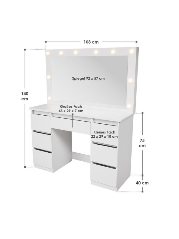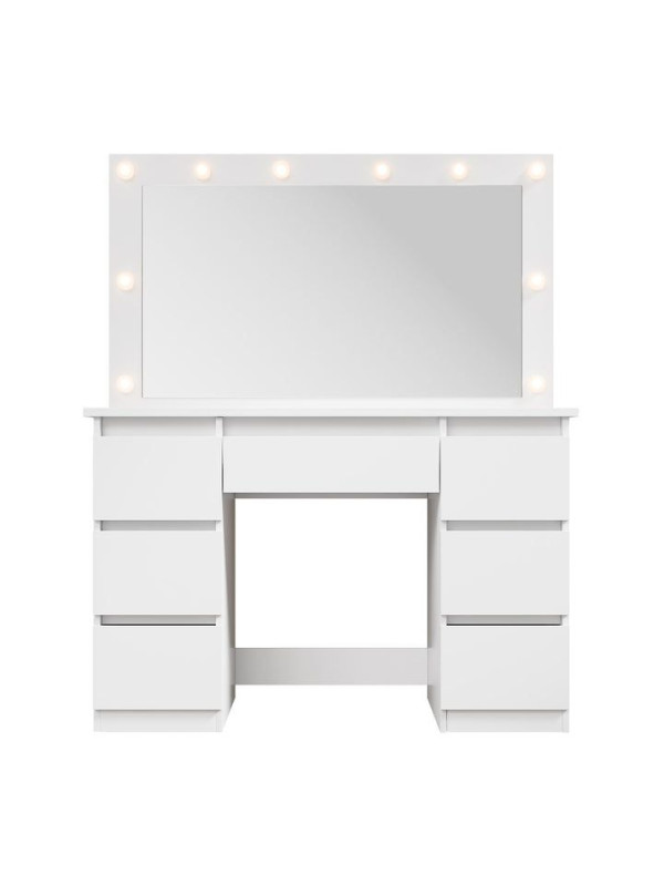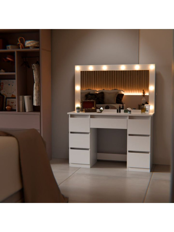 Toaletný stolík s LED zrkadlom a 7 zásuvkami, biely