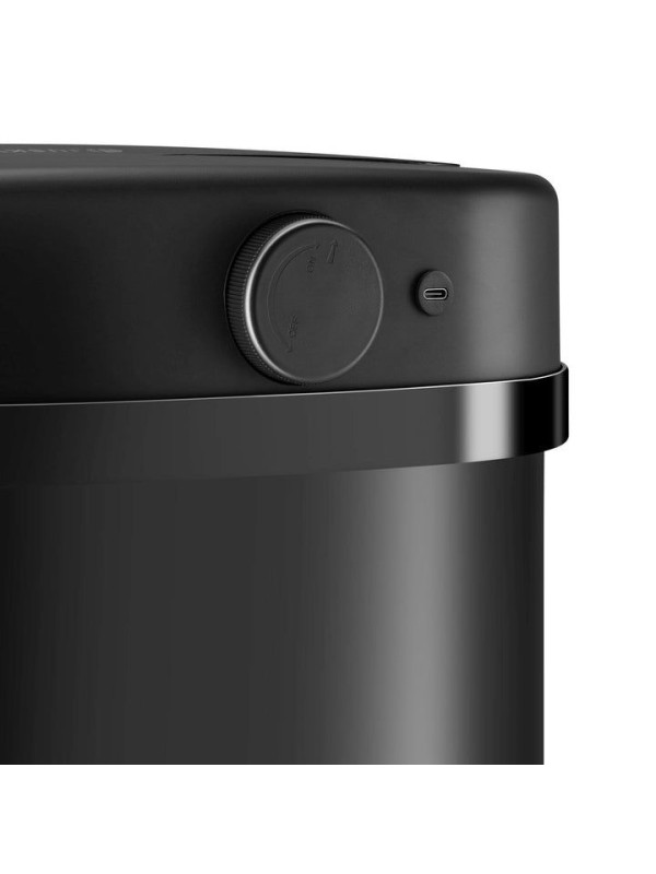 Robustná konštrukcia z nehrdzavejúcej ocele a odolného plastu zaručuje dlhú životnosť. Objem 60 litrov pojme aj väčšie množstvo odpadu, zatiaľ čo upínací krúžok drží vrecko bezpečne na mieste. Kôš je napájaný štyrmi AA batériami alebo cez USB-C kábel a jeho údržba je jednoduchá vďaka hladkému povrchu.