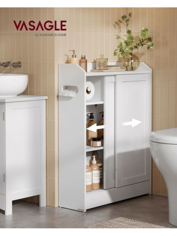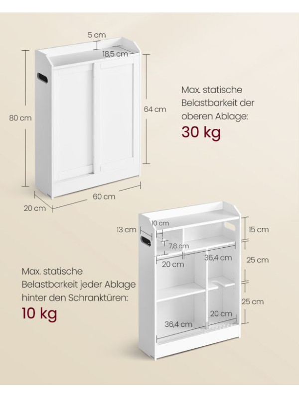 Úzka kúpeľňová skrinka s posuvnými dverami 60x20x80 cm biela
