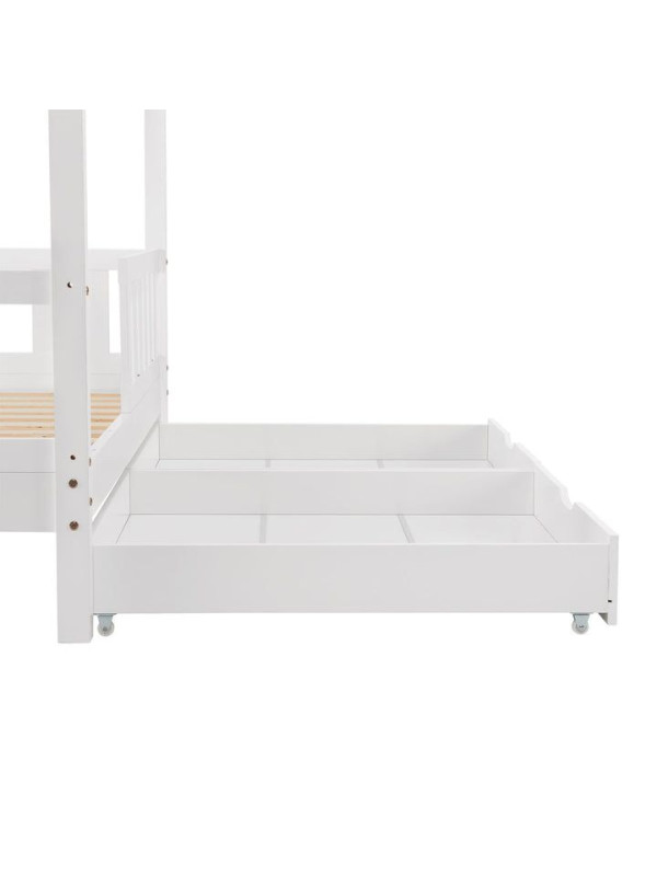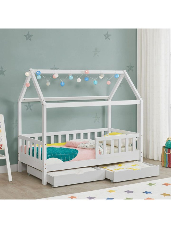 Detská posteľ 160x80, biela s roštom, zábranou a šuplíky