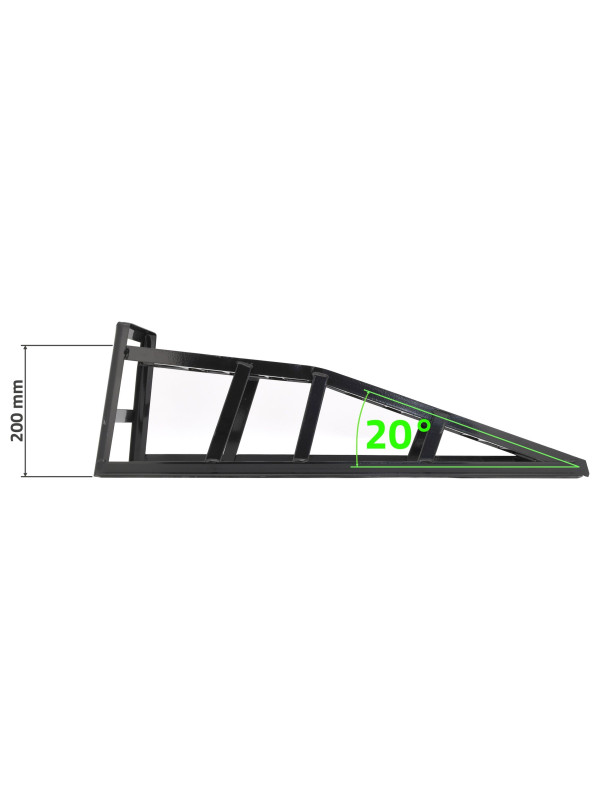 Nájazd pre vozidlo, je vhodný na údržbu a opravy automobilov. Zariadenie zaisťuje potrebnú výšku pre prácu pod vozidlom, alebo možnosť kontroly spodnej časti vozidla a z časti nahrádza dielenskú „jamu". Stabilná konštrukcia z ocele, vrátane husto rozmiestnených vzpier a klinov. Nájazdovú rampu je potrebné vždy používať v páre.