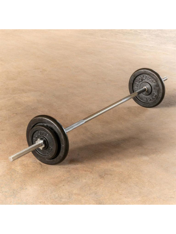 Podperná tyč na činky MAXXIVA® je vhodná pre všetky komerčne dostupné záťažové dosky s 3 cm držiakom. Pultová doska je upevnená poistným krúžkom, ktorý zabraňuje skĺznutiu závažia počas pohybu. Rýchlovýmenné hviezdicové zámky bezpečne upevňujú závažia na činku a zaručujú pohodlnú výmenu závažia. Rukoväte s krížovým závitom na tyči umožňujú bezpečné uchopenie tyče.