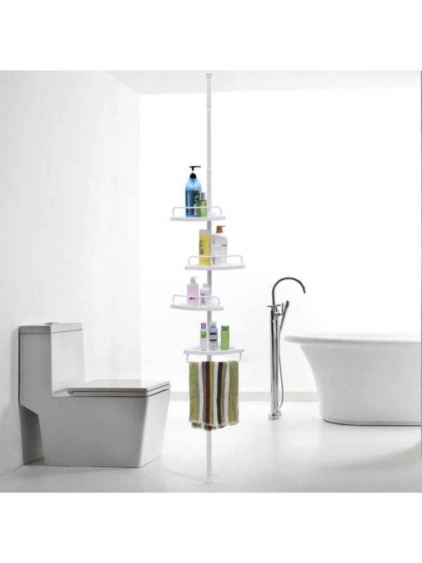 Teleskopická rohová polica do kúpeľne, 4 police, biela