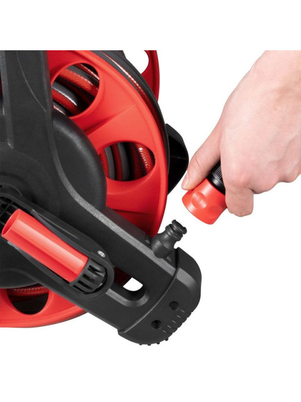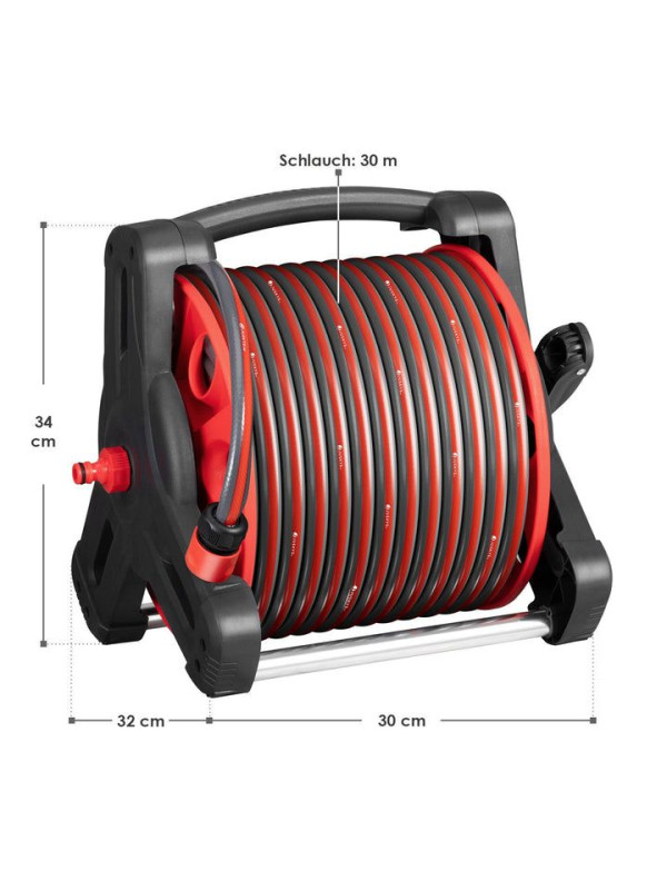 Stabilná konštrukcia z PVC zaručuje odolnosť a jednoduchú údržbu. Hadica s dĺžkou 30 m a prívodná hadica s dĺžkou 2 m zabezpečujú veľký dosah. Inštalácia je rýchla vďaka priloženým adaptérom a nástennému držiaku. Navijak je ľahký a ľahko prenosný, ideálny na každodenné použitie.