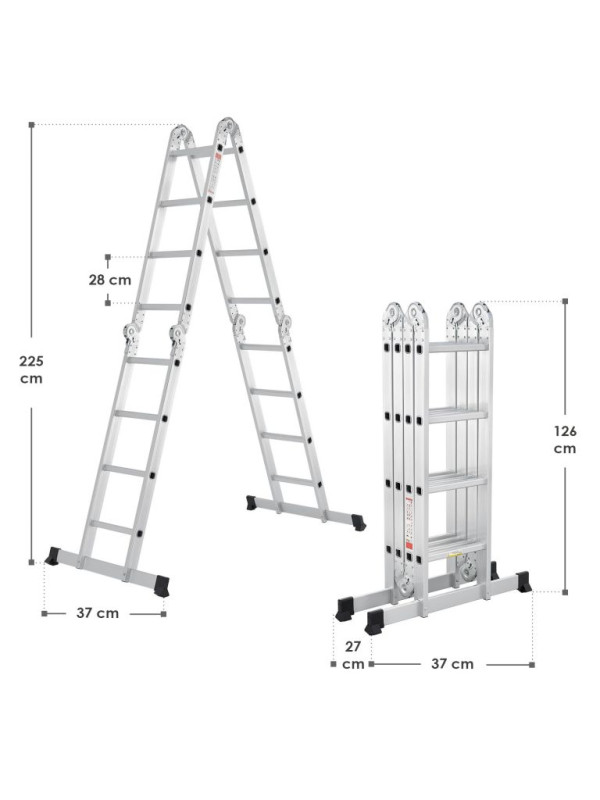Hliníkový skladací rebrík 3,6 m, 4 dielny, 6 priečok, 150 kg