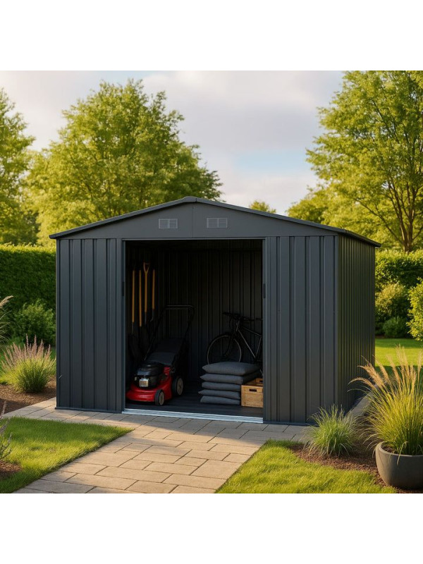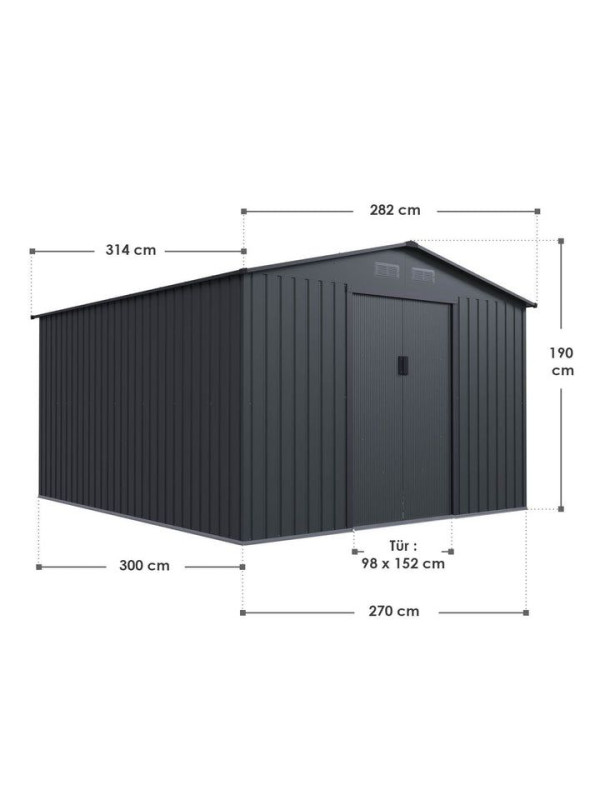Kovový záhradný domček s posuvnými dverami 282 x 314 x 190 c