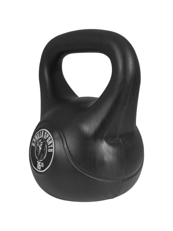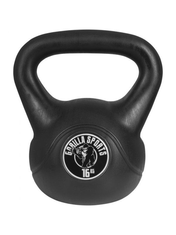 Gorilla Sports Kettlebell činka, plast, čierna, 16 kg
