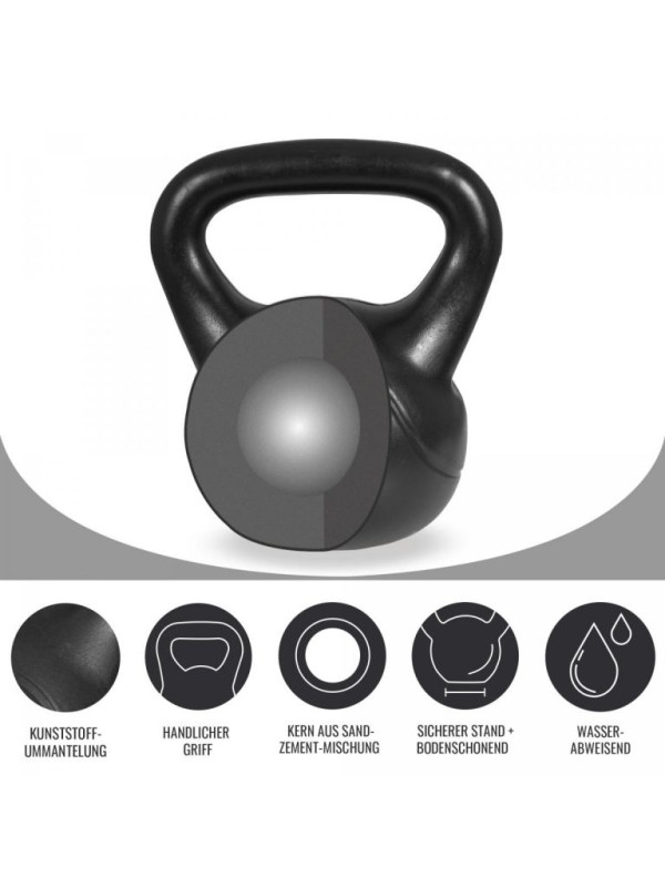 Gorilla Sports kettlebell činka, plast, čierna, 5 kg