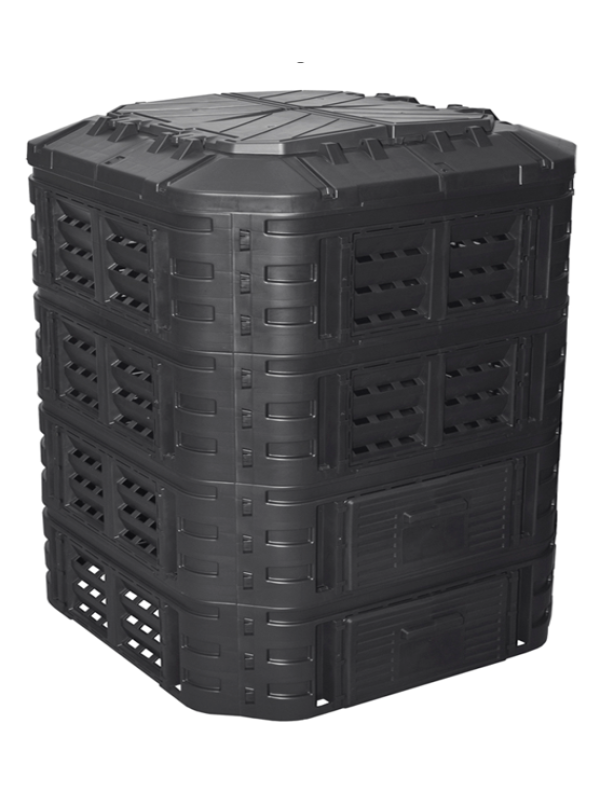 Plastový kompostér s objemom 1120 l vyrobený z veľmi odolného polypropylénu. Konštrukcia zabezpečuje cirkuláciu vzduchu a urýchľuje proces rozkladu. Súčasťou produktu je veko a bočné dvierka pre ľahké vyberanie kompostu. Kompostér je odolný voči poveternostným vplyvom a UV žiareniu a môže byť umiestnený vonku za všetkých poveternostných podmienok od -30 °C do 45 °C. Montáž je veľmi jednoduchá, vďaka systému CLICK nie sú potrebné žiadne náradie. Vyrobené z recyklovaného materiálu. Výhody kompostéra: Systém kvapkového zavlažovania. Otvor na visiaci zámok. Pevné bočné západky. Zavlažovanie a prevzdušňovanie. Pevné pánty veka. Pohodlná rukoväť. Veľké posuvné dvierka s pohodlnými rukoväťami. Inštalácia zemného kotviaceho systému.