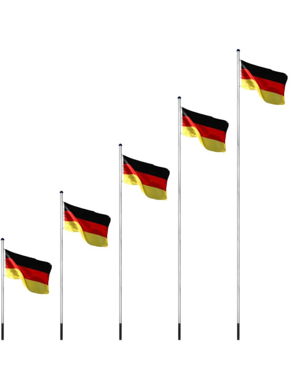 Stožiar FLAGMASTER® vyrobený z hliníka je ideálnym pútačom do Vašej záhrady. Vlajkový stožiar sa skladá zo šiestich zásuvných prvkov a ľahko sa inštaluje - stačí jednoducho zasunúť do seba a vložiť do držiaka, ktorý je súčasťou balenia a ktorý je tiež vhodný na zabetónovanie. Celková dĺžka vrátane držiaka je približne 6,5 m. Vďaka zásuvnému systému sa môže takisto meniť výška stožiara: 210 cm, 310 cm, 410 cm, 510 cm alebo 610 cm.