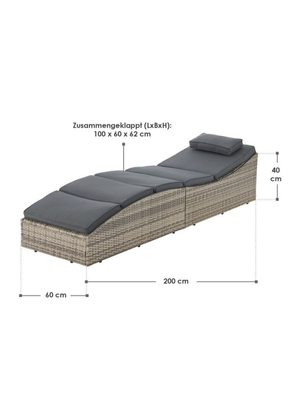 Záhradné skladacie ležadlo, polyratan, sivé, 200 x 60 cm