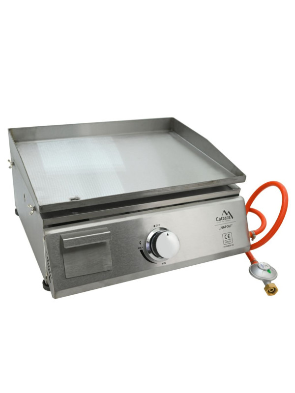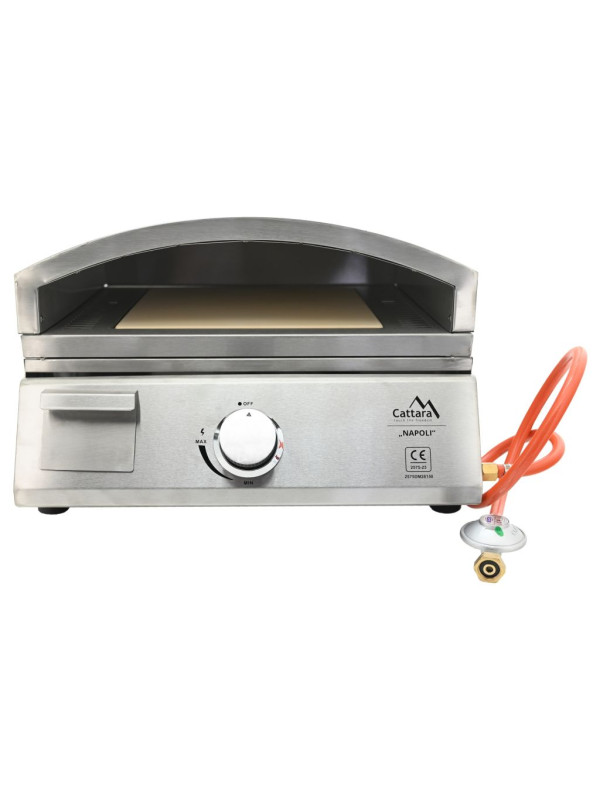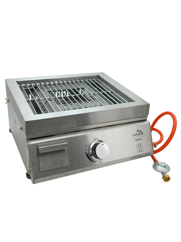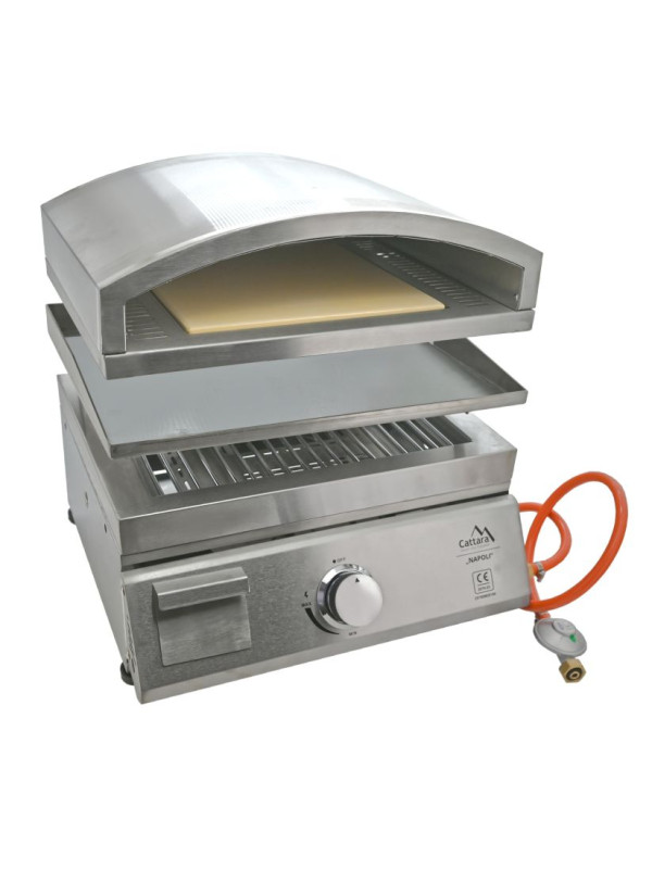 Voliteľná súčasť modulárnej záhradnej kuchyne Cattara TORINO obsahuje gril s roštom, grilovaciu dosku a pec na pizzu, všetko vyrobené z nehrdzavejúcej ocele. Gril je vybavený výsuvnou odkvapkávacou miskou na zachytávanie tuku a plynovým prívodom s hadicou a ventilom. Rošt ponúka grilovaciu plochu 40 x 31 cm, grilovacia doska z ocele má rozmery 50 x 38 cm a slúži ako teppanyaki. Doska má otvor pre zásuvku na zachytávanie tuku a šťavy. Pec na pizzu s vnútorným priestorom 44,5 x 38 cm je vybavená kordieritovým kameňom (31 x 31 cm) pre dokonalé prepečenie pizze. Gril Napoli je vhodný na použitie so systémom Cattara TORINO, spolu tak tvoria ideálnu vonkajšiu kuchyňu pre pohodlné grilovanie a spríjemnenie pobytu na záhrade.