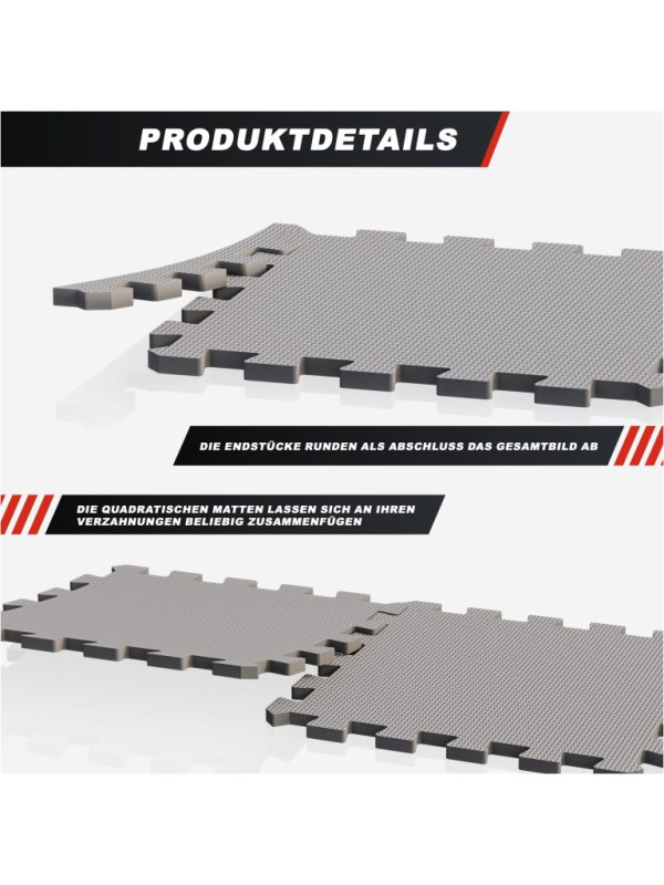 Praktický systém na zapínanie umožňuje rýchlu montáž a variabilné usporiadanie. Odolná pena tlmí nárazy a chráni podlahu pred poškodením. Jednoduchá údržba a dlhá životnosť.