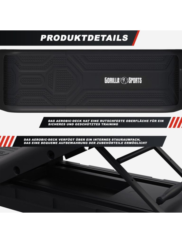 Fitness stepper GORILLA SPORTS® s úložným priestorom, čierny