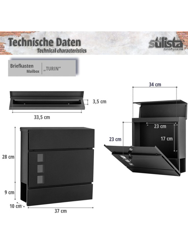 Poštová schránka Turín, 370 x 370 x 110, čierna
