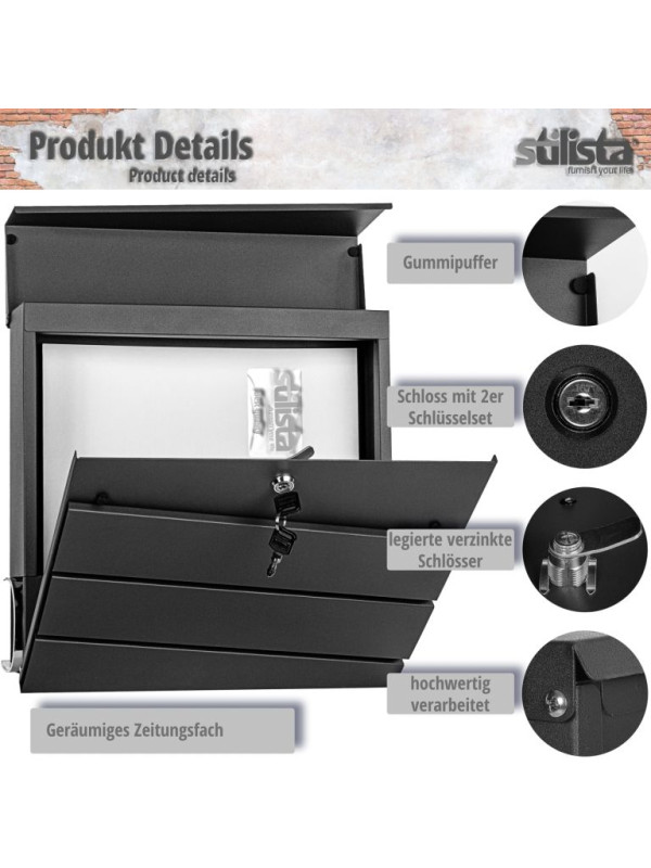 Nástenná poštová schránka z rady Stilista v modernom dizajne ponúka dostatok úložného priestoru pre Vaše listy a pohľadnice. Schránka má veľký otvor na listy a je teda vhodná aj pre veľké listy a silnejšie obálky. Sú tak chránené pred poveternostnými vplyvmi. Vďaka dodávanému montážnemu materiálu schránku zostavíte rýchlo a ľahko.