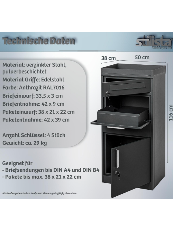 Poštová schránka STILISTA, 120 x 50 x 38 cm