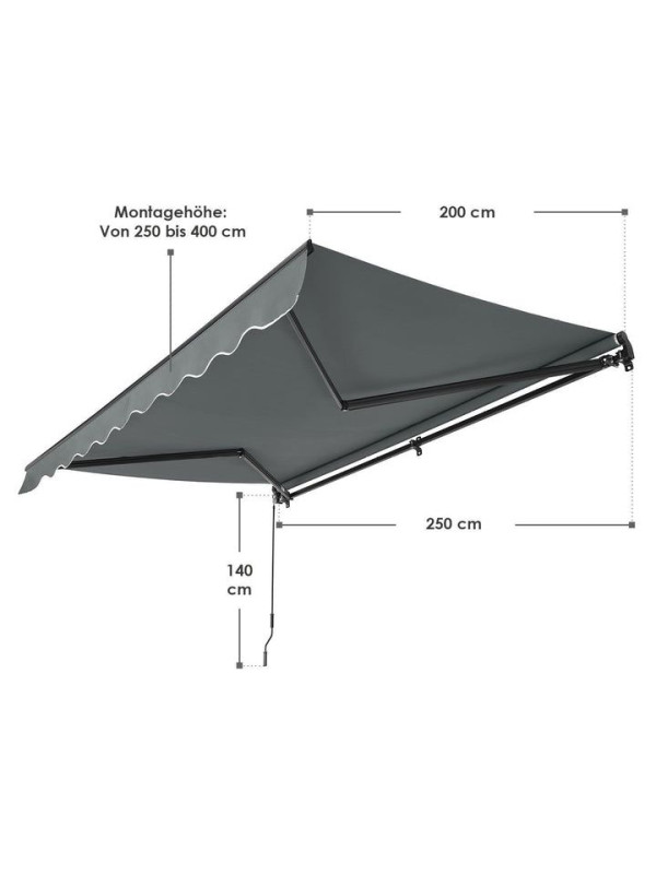 Vonkajšia markíza 250 x 200 cm, sivá, nastaviteľný sklon