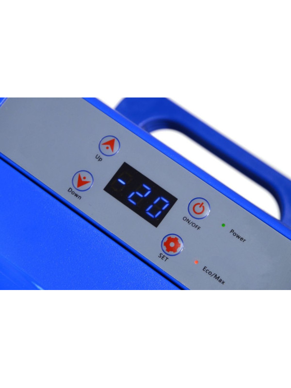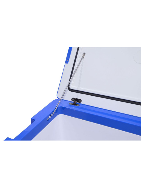 Chladiaci box môže byť napájaný z 12 V alebo 24 V zásuvky automobilov či lodí, alebo z bežnej zásuvky 230 V. Je vybavený výkonným kompresorom s chladiacim médiom a možno ho použiť ako chladničku s teplotou 0 - 10 °C, zároveň aj ako mraziaci box s teplotou až -20 °C. Chladiaci box ponúka aj režim ECO pre úsporu elektrickej energie a Hi mode pre rýchle ochladenie obsahu až k -20 °C (pri okolitej teplote 25 °C). Ďalej je vybavený inteligentným systémom ochrany pred vybitím pripojeného akumulátora a má osadený displej s tlačidlami pre pohodlné ovládanie. Dvierka chladiaceho boxu sú variabilné - umožňujú pozdĺžne otváranie, ale aj na priečne otváranie. Vďaka postranným madlám z odolného plastu je tento box ľahko prenosný. Vonkajší plášť je vyrobený z kvalitne lakovaného hliníka striebornej farby, ktorý spolu s perfektnou PU izoláciou zaisťuje dlhodobé zachovanie stabilnej teploty vovnútri boxu a zaručuje veľmi nízku spotrebu energie.