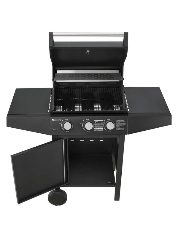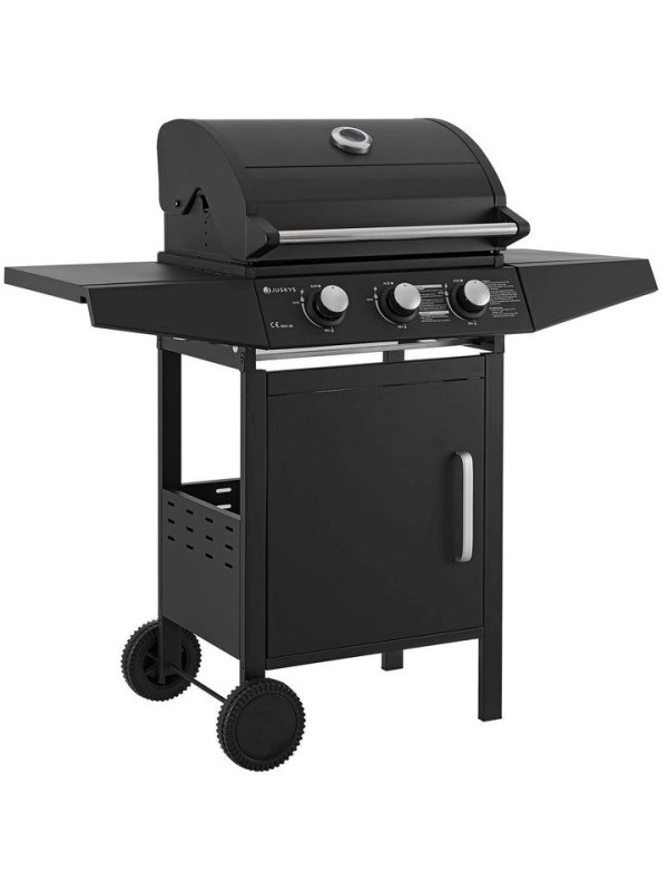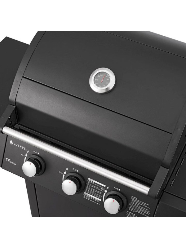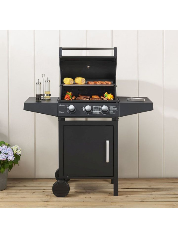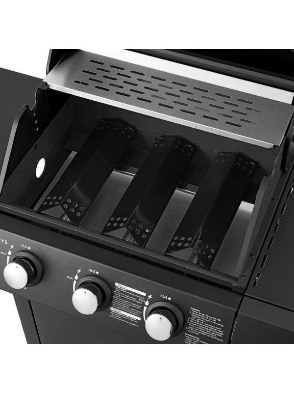 Záhradný plynový gril s tromi horákmi, s plachtou, čierny