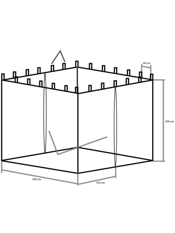 Táto sieť proti komárom je nutnosťou, ak chcete vonku oslavovať až do hlbokej noci. Kompletne uzavrie celý stan s rozmermi 3 x 3 m, je vhodná pre skladacie stany aj pre stany s klasickým spojovacím systémom. Sieť jednoducho pripevníte suchými zipsami na konštrukciu stanu. Dvomi zipsami je možné vchod otvoriť a znova uzavrieť. Vzhľadom k tomu, že je sieť vyrobená z jedného dlhého kusu (nie zo štyroch jednotlivých sietí na každej strane), nemajú komáre možnosť preniknúť dovnútra.