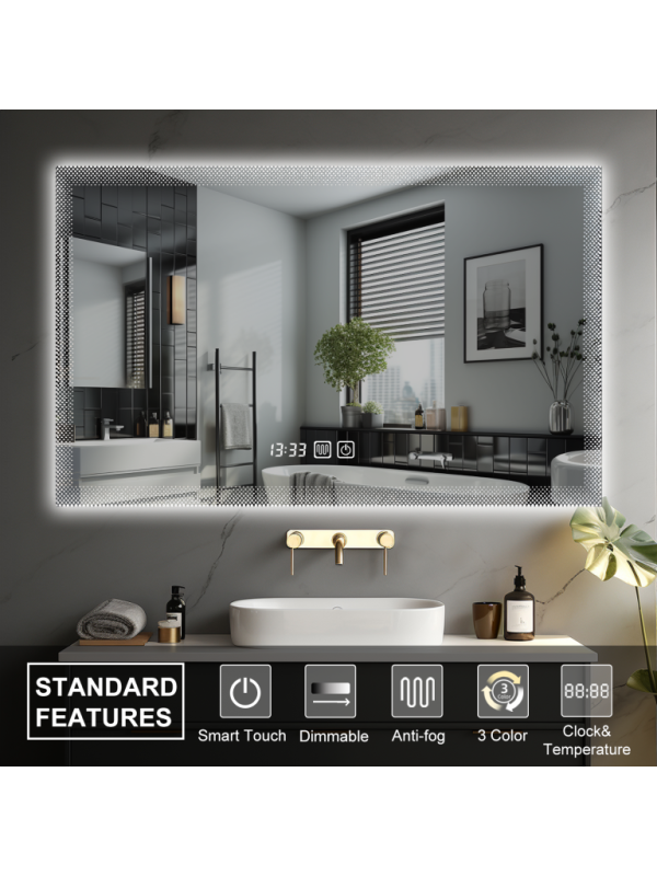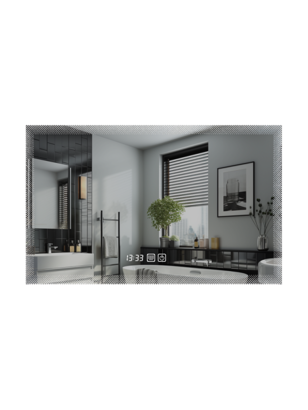 Luxusné LED zrkadlo do kúpeľne 90×70, hodiny a odmlžovanie